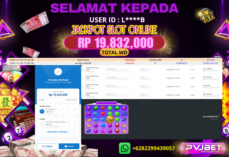 Selamat kepada User id : L****B Telah berhasil mendapat kemenangan sebesar 19,832,000 Pada permainan SLOT PRAGMATIC “ SWEET BONANZA SUPER SCATTER ”.
