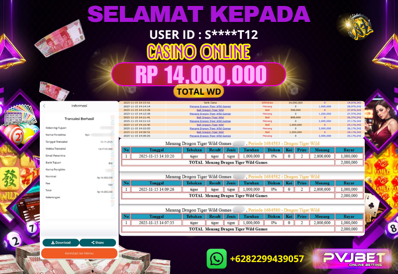Masih ragu dengan situs kami ? Silahkan lihat saja bukti kemenangan Member Setia Pvj bet sebesar Rp. 19.832.000,- Tidak perlu khawatir, Karena Situs Pvjbet kemenangan berapapun akan dibayarkan kepada pemenang. Ayo raih kemenangan anda bersama di Pvjbet.