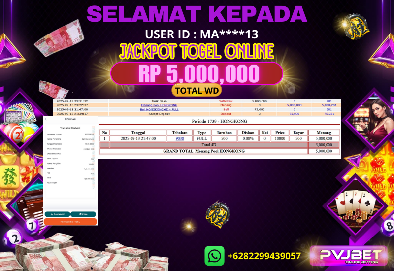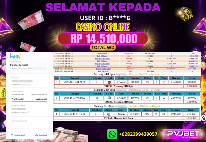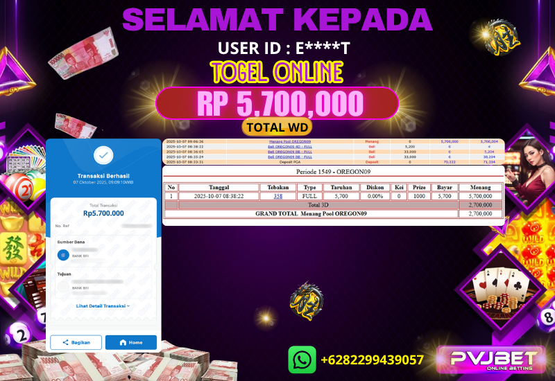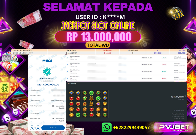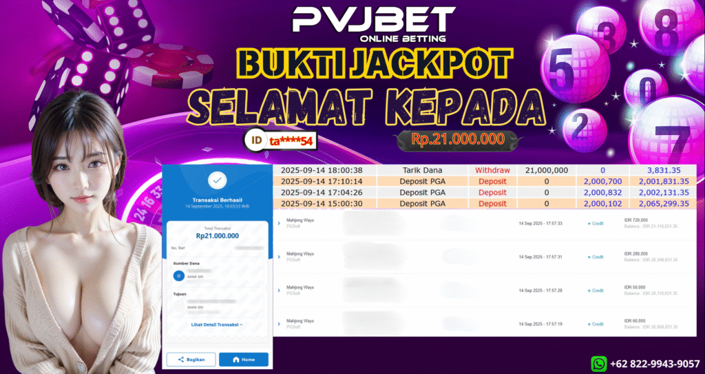 Masih ragu dengan situs kami ? Silahkan lihat saja bukti kemenangan Member Setia Pvj bet sebesar Rp. 14.000.000,- Tidak perlu khawatir, Karena Situs Pvjbet kemenangan berapapun akan dibayarkan kepada pemenang. Ayo raih kemenangan anda bersama di Pvjbet.