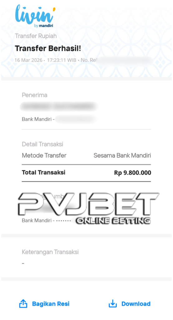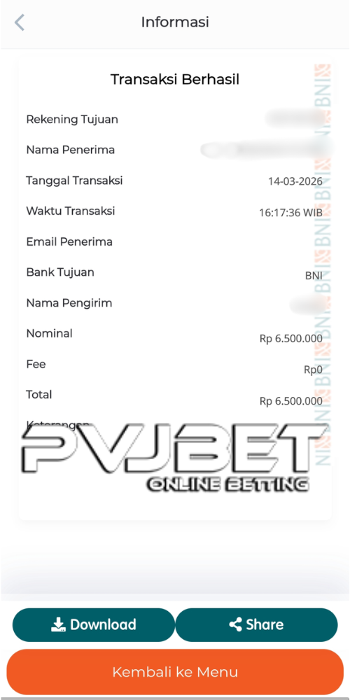 Masih ragu dengan situs kami ? Silahkan lihat saja bukti kemenangan Member Setia Pvj bet sebesar Rp. 9.850.000,- Tidak perlu khawatir, Karena Situs Pvjbet kemenangan berapapun akan dibayarkan kepada pemenang. Ayo raih kemenangan anda bersama di Pvjbet.