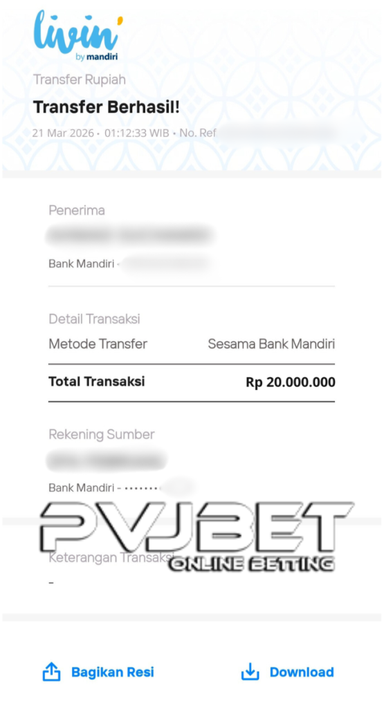 Masih ragu dengan situs kami ? Silahkan lihat saja bukti kemenangan Member Setia Pvj bet sebesar Rp. 20.000.000,- Tidak perlu khawatir, Karena Situs Pvjbet kemenangan berapapun akan dibayarkan kepada pemenang. Ayo raih kemenangan anda bersama di Pvjbet.