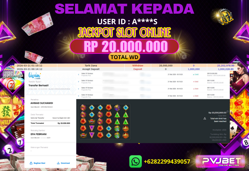 Posted on March 21, 2026 By pvjbet No Comments on JACKPOT KEMENANGAN SLOT PRAGMATIC PLAY “ GATES OF OLYMPUS ” 20 JT