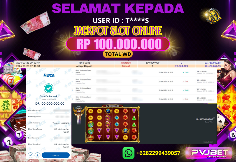 Posted on March 23, 2026March 23, 2026 By pvjbet No Comments on JACKPOT KEMENANGAN SLOT PRAGMATIC PLAY “ GATES OF OLYMPUS SUPER SCATTER ” 100 JT