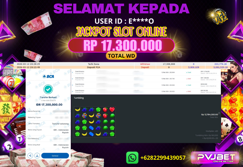 Posted on March 12, 2026March 12, 2026 By pvjbet No Comments on JACKPOT KEMENANGAN SLOT PRAGMATIC “ SWEET BONANZA ” 17 JTAN