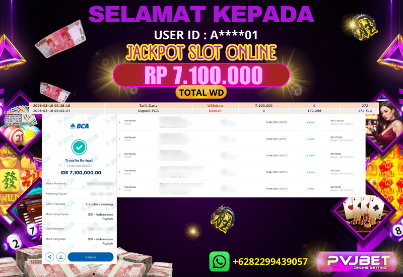 Masih ragu dengan situs kami ? Silahkan lihat saja bukti kemenangan Member Setia Pvj bet sebesar Rp. 7.100.000,- Tidak perlu khawatir, Karena Situs Pvjbet kemenangan berapapun akan dibayarkan kepada pemenang. Ayo raih kemenangan anda bersama di Pvjbet.
