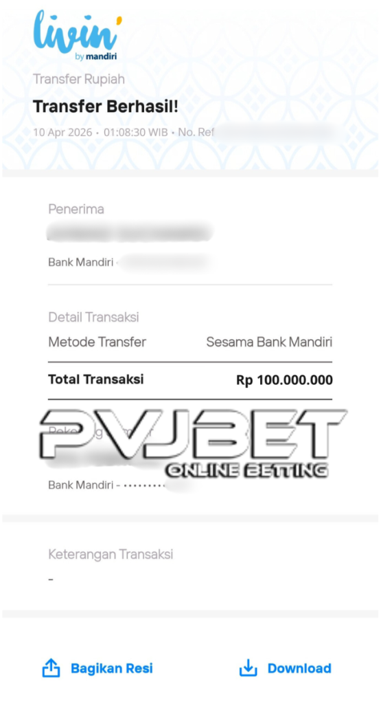 Masih ragu dengan situs kami ? Silahkan lihat saja bukti kemenangan Member Setia Pvj bet sebesar Rp. 10.000.000,- Tidak perlu khawatir, Karena Situs Pvjbet kemenangan berapapun akan dibayarkan kepada pemenang. Ayo raih kemenangan anda bersama di Pvjbet.
