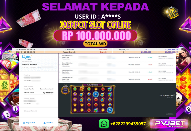 Posted on April 10, 2026April 10, 2026 By pvjbet No Comments on JACKPOT KEMENANGAN SLOT PRAGMATIC PLAY “ GATES OF GATOT KACA SUPER SCATTER ” 100 JT