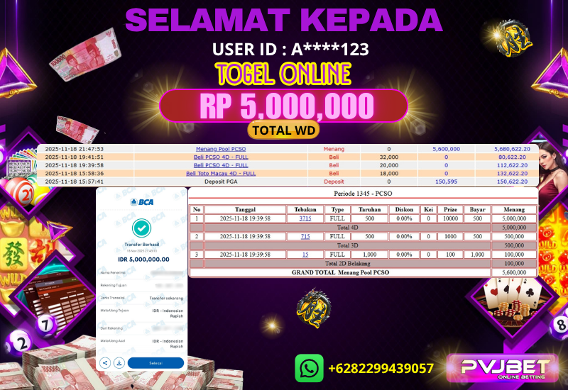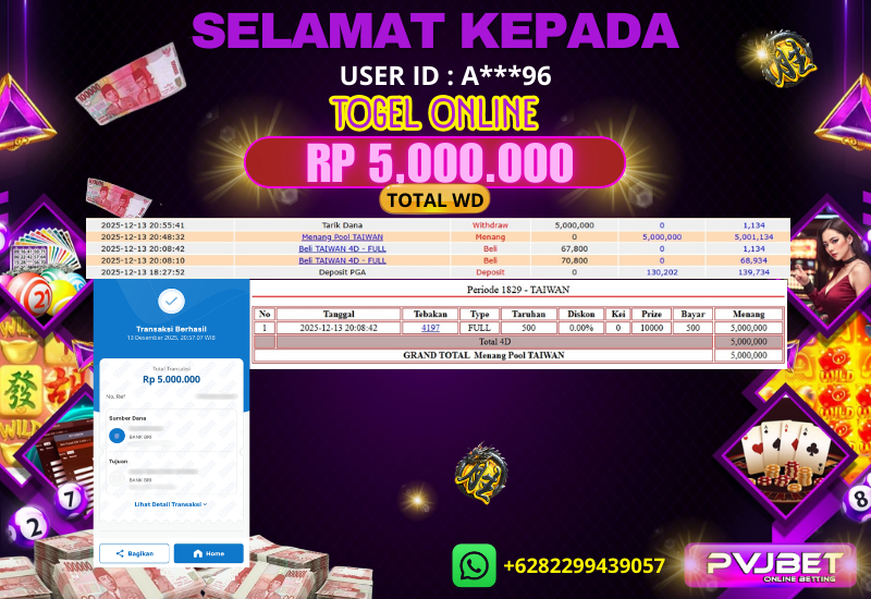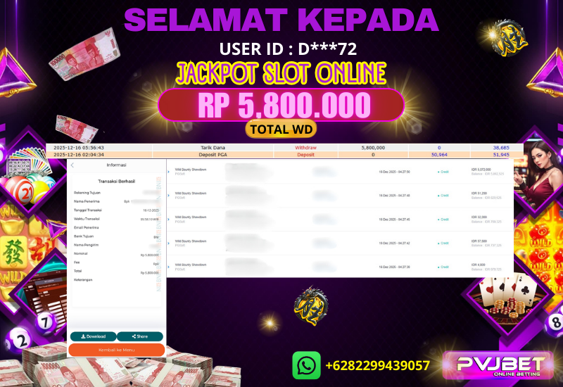 Masih ragu dengan situs kami ? Silahkan lihat saja bukti kemenangan Member Setia Pvj bet sebesar Rp. 10.000.000,- Tidak perlu khawatir, Karena Situs Pvjbet kemenangan berapapun akan dibayarkan kepada pemenang. Ayo raih kemenangan anda bersama di Pvjbet.